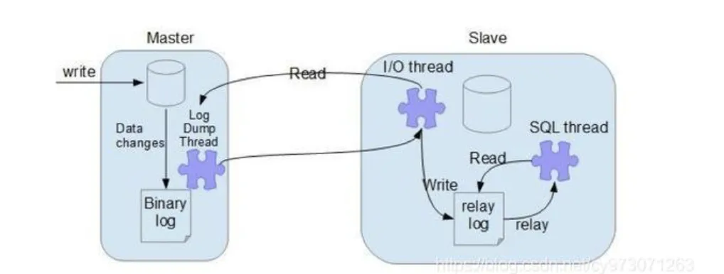 MySQL 主从复制默认是异步的模式。MySQL增删改操作会全部记录在bin-log(binary log)中,当slave节点连接master时,会主动从master处获取最新的bin-log文件。并把bin-log存储到本地的relay-log中,然后去执行relay-log的更新内容。